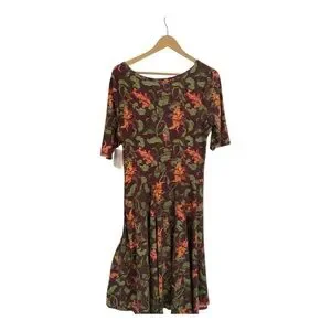 Beautiful LuLaRoe dress featuring a rich floral print in earthy tones of green, orange, and burgundy.