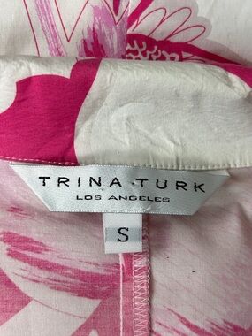 Trina Turk Pink White Floral Top Size S Made in USA Cotton Stretch Resort Chic
