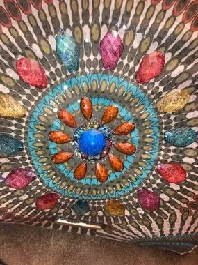 Add bold color with this multicolor gemstone mandala wall decor. The design features vibrant blue, orange, pink, gold, teal, and brown tones for an eye-catching focal point. Bright hues create a lively, modern accent for any room. Easy to style and designed to draw attention.