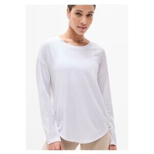 ATHLETA Move With Ease Top Bright White XS Long Sleeve Tee Lightweight Relaxed