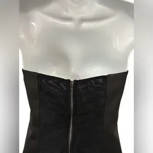 This stunning black Marciano Guess bustier is a chic and versatile addition to any wardrobe. Made from a high-quality fabric with visible seam details and a back zipper, it fits the body perfectly. The back features a pleated mesh insert with a zipper for a secure fit and a bold style. Perfect for a night out, it can also be styled casually with a pair of jeans. It's in perfect condition and ready to wear 👌 / 🚭