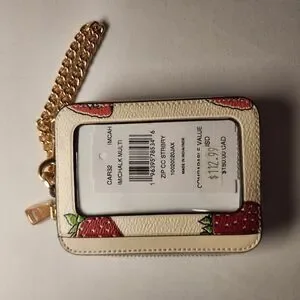 NWT COACH CAR32 STRAWBERRY PRINT ID BADGE Zip Card WALLET