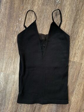 Free People Black Ribbed V-Plunge Camisole