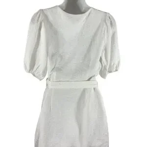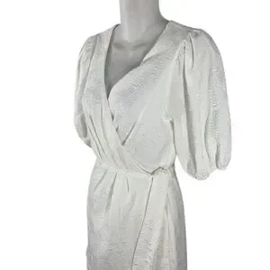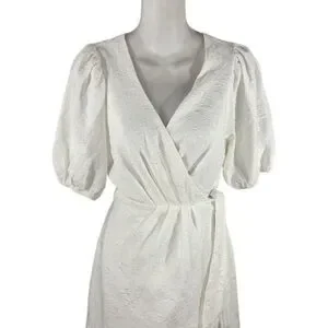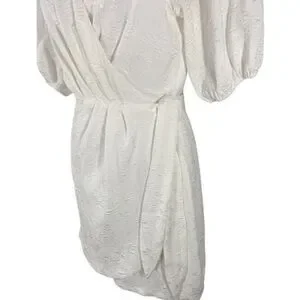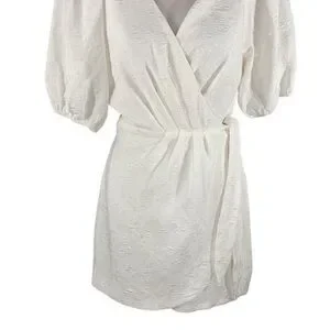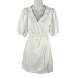 Lulu’s Still Dreaming White Jacquard Puff Sleeve Mini Wrap Dress OO16