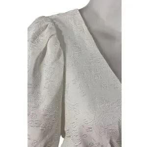Lulu’s Still Dreaming White Jacquard Puff Sleeve Mini Wrap Dress. Lulus Exclusive! We aren't giving up on our dreams of spending the evening in the Lulus Still Dreaming White Jacquard Puff Sleeve Mini Wrap Dress! Textured woven jacquard boasts an embossed floral pattern as it shapes a wrap bodice, puff sleeves with elastic cuffs, and an overlapped mini skirt that ties at the waist.