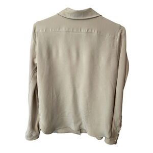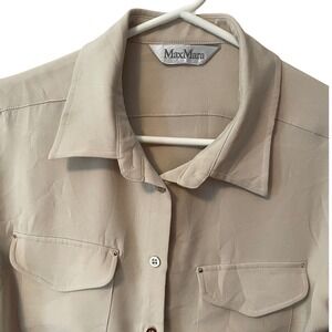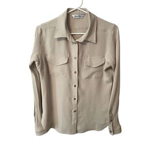 Max Mara Womens M Beige Silk Blend Button Down Blouse Long Sleeve Utility Shirt