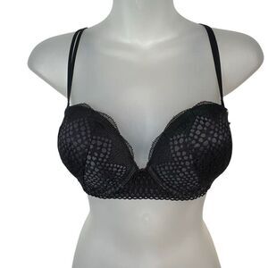 Victoria’s Secret Very Sexy Black Mesh Overlay Push-Up Bra 32D E70