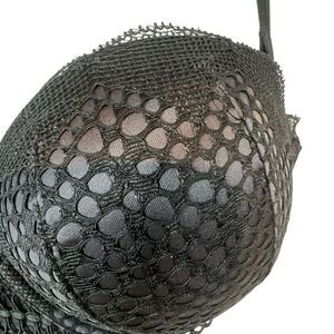 Victoria’s Secret Very Sexy bra brings a bold and alluring edge to everyday lingerie. Designed in sleek black, it features padded push-up cups overlaid with a statement fishnet mesh and circular lace pattern. The plunge neckline is enhanced with scalloped lace trim, while the underwire provides lift and shaping. Adjustable multiway straps allow versatile styling, and the back has a classic hook-and-eye closure for secure fit.