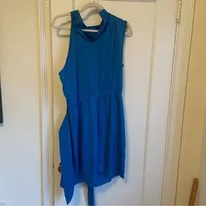 PRETTYGARDEN Formal Satin Dress Sleeveless Mock Neck Tie Waist - size XL