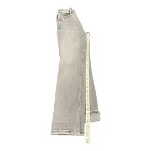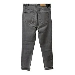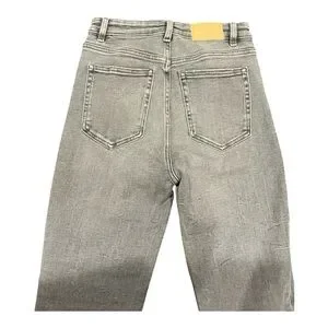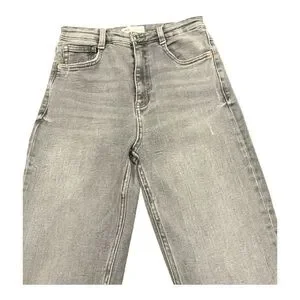 Jeans ZARA de mujer estilo recto (straight leg) en color gris lavado. Tela cómoda con ligero stretch, cintura alta y dobladillo en la parte inferior (se puede usar doblado o largo normal). Perfectos para outfits casuales o de diario.