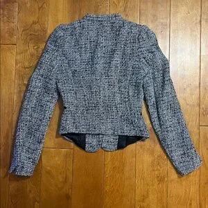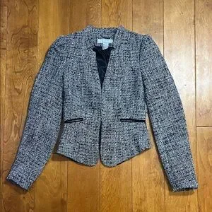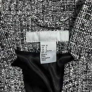 H & M Tweed Blazer Size 2 Black White Office Career Academia Work Capsule Formal