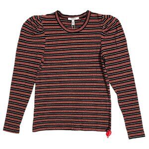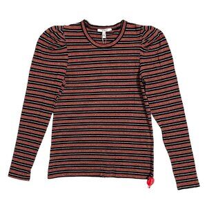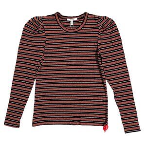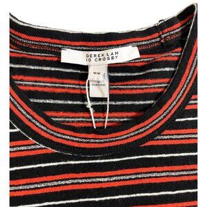 Derek Lam 10 Crosby Striped Knit Top Sweater Orange Silver Black SZ M NWT
