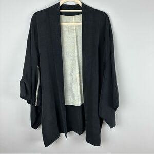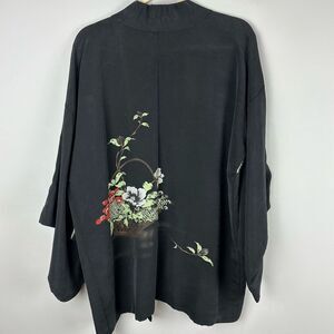 Vintage Japanese Black Haori Jacket Silk Kimono with Floral Embroidery