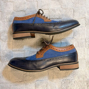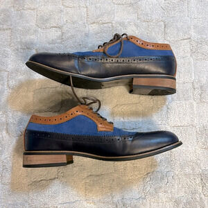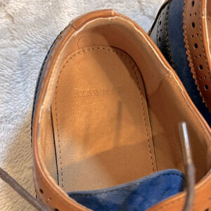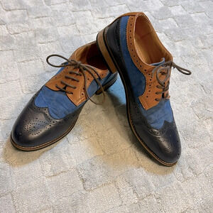 Azar Man Navy Blue & Cognac Leather Suede Lace-Up Oxfords Dress Shoes | Men’s 9