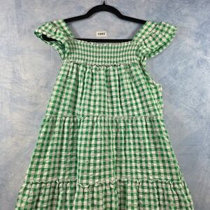 Old Navy Womens Green Gingham Smocked Tiered Midi Dress Flutter Sleeve Medium