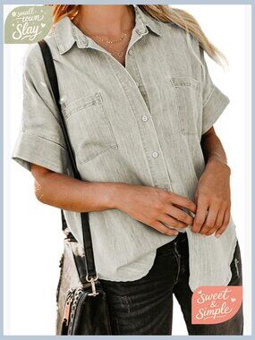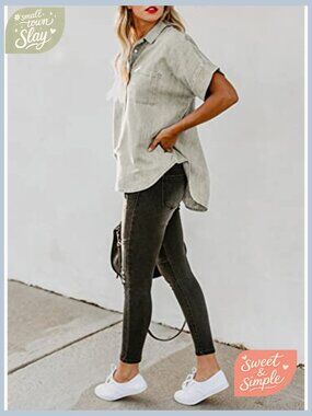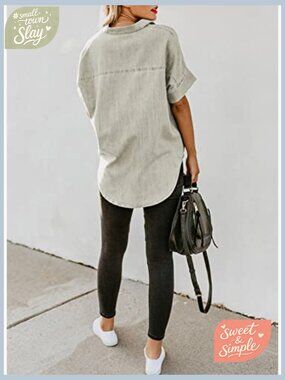 Women's V-Neck Button Down Shirt Short Sleeve Lightweight Cotton Casual