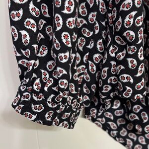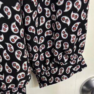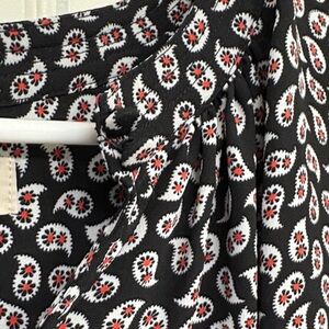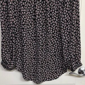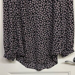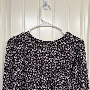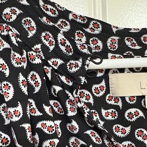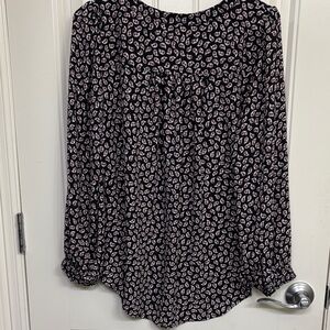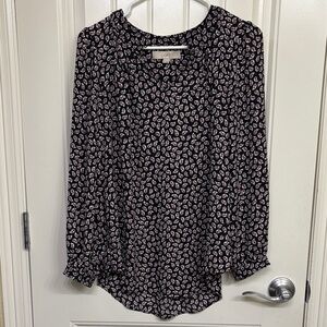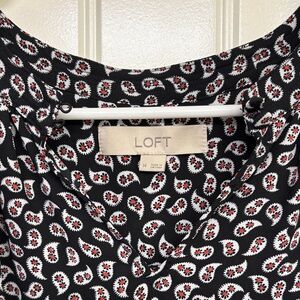 Stylish LOFT blouse with a unique black and white print. Perfect for versatile styling.