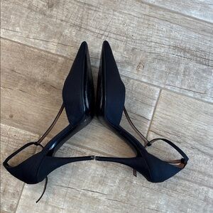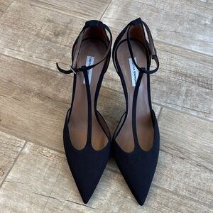 Tabitha Simmons black T-strap stiletto pumps.