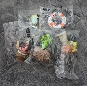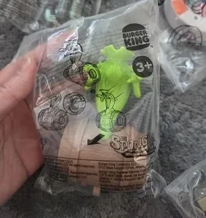 Set of sealed SpongeBob-themed collectible toys from Burger King. Includes multiple characters and accessories. Bright yellow, green, pink and white pieces. Great addition for collectors.