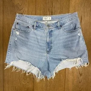 Abercrombie & Fitch The 4" Mom Short High Rise In Light Blue Denim