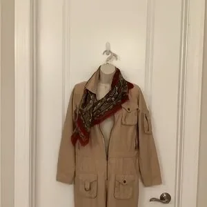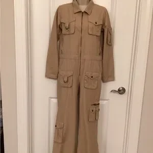 Super Cute long leg and long sleeve, jumpsuit. Many fun pockets, zipper compartments, snaps, brass loops. Excellent condition, no rips, stains or flaws.