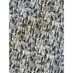 Akris mainline (not Punto) straight-leg pants from the 2022 "100 Years" centenary anniversary collection, sold exclusively at Saks Fifth Avenue. All-over digital fashion figure/archive sketch print in black and white — a signature Akris digital photo print commemorating 100 years of the brand's design history. 97% cotton, 3% elastane shell; cupro lining. Zip fly, US size 6 / F 38 / D 36 / UK 10 / IT 42. Made in Switzerland.