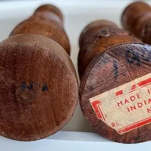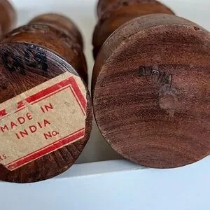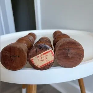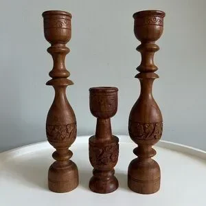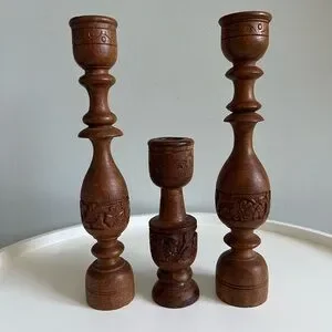 Vintage Set of 3 Hand Carved Wooden Candlesticks Boho Home Decor India