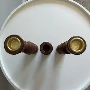 Enhance your home decor with this elegant set of brown wooden candle holders