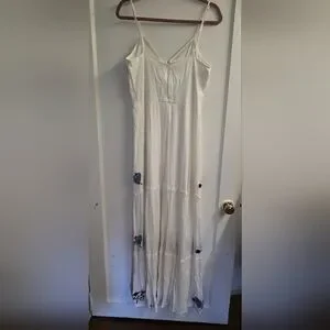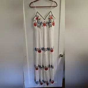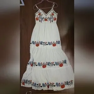 Altar’d State Embroidered Boho Maxi Dress White Floral Tiered Medium