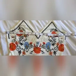 Stunning boho maxi dress by Altar’d State featuring vibrant floral embroidery throughout. Flowy tiered silhouette with a flattering fit and adjustable spaghetti straps—perfect for spring, summer, vacations, or festivals.