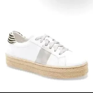Women’s Coconut by Matisse “It Girl” white leather metallic silver stripe zebra heel espadrille chunky platform sneakers- Size 9. Excellent, like new condition. Little to no signs of wear. See all photos. Smoke free home. Fast shipping!