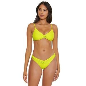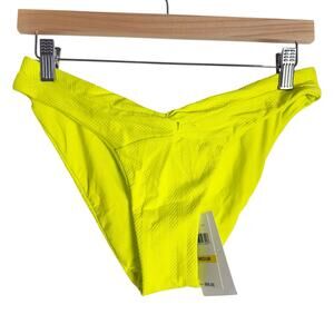 Becca Prima Neon Yellow Twist Front Hipster Bikini Swimsuit Bottoms Size Medium
