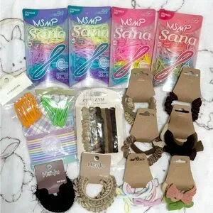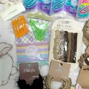 Mixed set of hair ties, scrunchies, clips, and elastics.