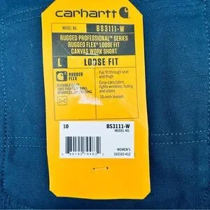 Carhartt NWT Rugged Professional Series Rugged Flex Loose Fit Canvas Work Shorts for women, model BS3111-W. Size 10. Navy blue. Brand new. See photos for details. From a smoke/ pet free home. Reasonable offers welcome.