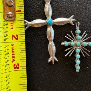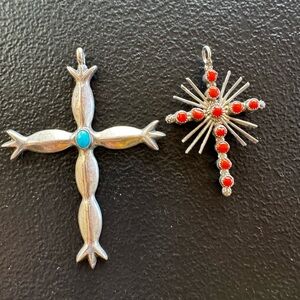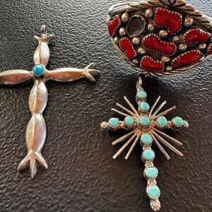 Navajo Sterling Cross Pendants & Red Coral Cuff