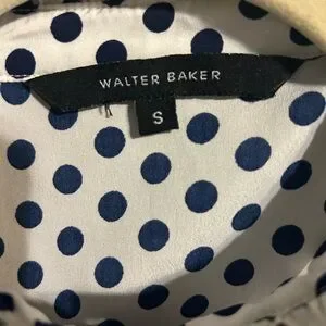 Walter Baker White Navy Polka Dot Ruffle Blouse S