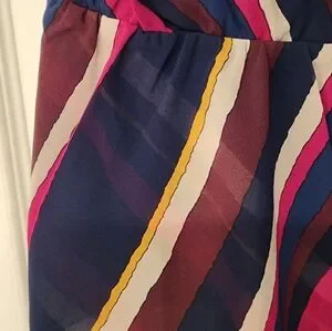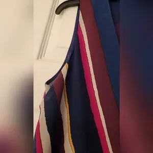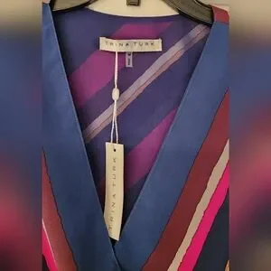 TRINA TURK Stellar Surplice V Neck Multi Striped Top Asymmetrical Hem Size Med