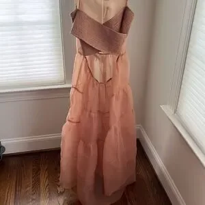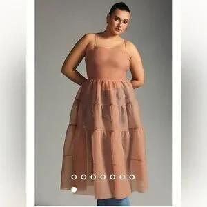 Anthropologie X OhSevenDays Tiered Sheer Midi Dress Size Large color blush
