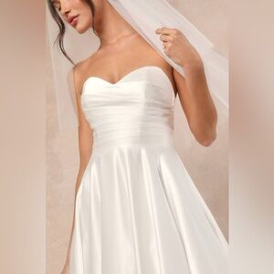 NWOT Lulus Khalida White Satin Strapless Bridal Gown $298 MSRP Estimated Small
