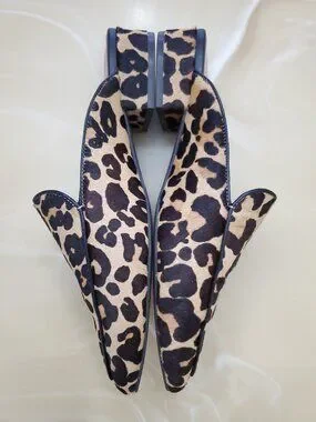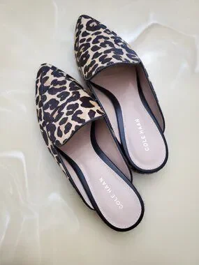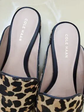 Cole Haan Calf Hair Piper Loafer Mules in Leopard Print Size 8