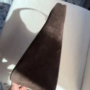 Tory Burch hobo crafted in cowhide and suede. Rich brown and cream colorblock with leather trim. Subtle logo hardware on front. Single shoulder strap and adjustable buckle. Casual yet polished silhouette.