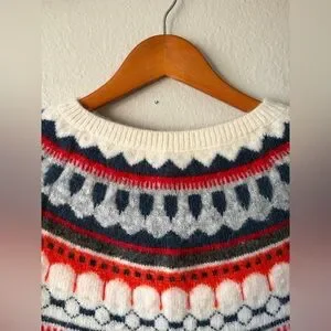 GAP Mohair Wool Blend Fair Isle Nordic Crew Neck Sweater