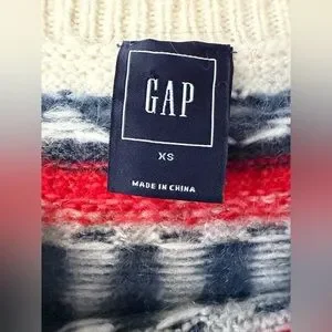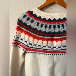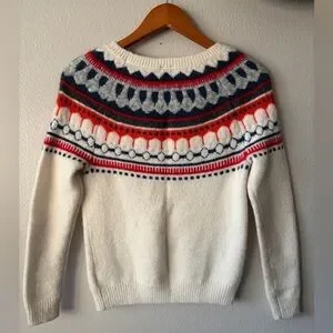 GAP Mohair Wool Blend Fair Isle Nordic Crew Neck Sweater Cream Women XS