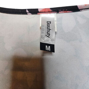 Beauhuty Medium Black Pink Floral Deep V-Neck Slim Fitted Long Sleeve Shirt