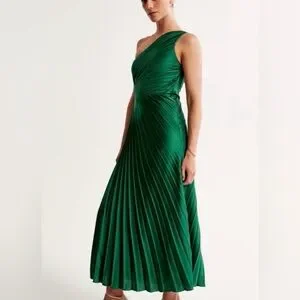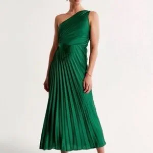 Abercrombie Giselle Pleated One-Shoulder Cutout Maxi Dress in Deep Green - NWT