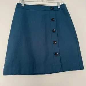 Ann Taylor Teal Button-Front A-Line Mini Skirt Fully Lined Dark Academia Women 6