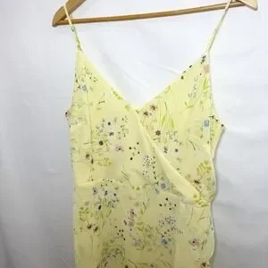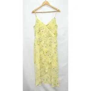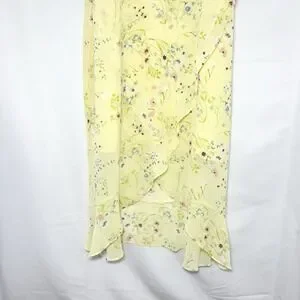 LOFT Floral High Low Wrap Midi Dress Size 12 Ruffle Yellow Feminine Dainty Sun