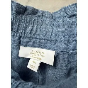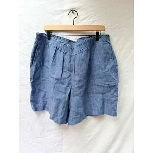 Charter Club Luxury Linen Shorts Womens XXL Blue Elastic Paperbag Waist Relaxed