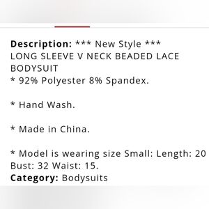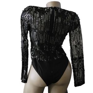 Womens Long Sleeve V-Neck Beaded Lace Bodysuit