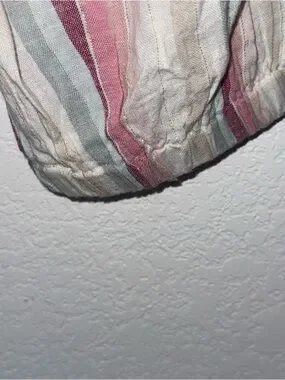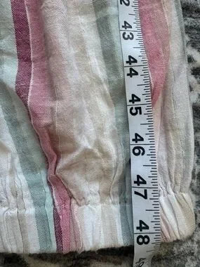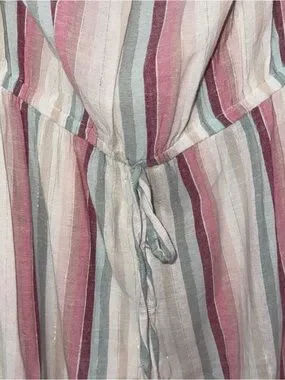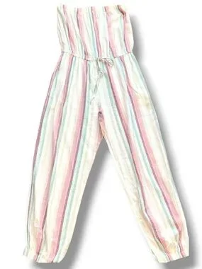 Elan striped strapless jumpsuit cream with pink and teal jogger bottom